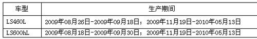 中新網(wǎng)5月21日電 據(jù)國(guó)家質(zhì)檢總局今日的消息稱,因轉(zhuǎn)向控制系統(tǒng)缺陷,豐田汽車(中國(guó))投資有限公司日前已向國(guó)家質(zhì)檢總局遞交了召回報(bào)告,預(yù)計(jì)將自2010年06月21日起,召回部分2009-2010年款進(jìn)口雷克薩斯(LEXUS)LS460L和LS600hL。
