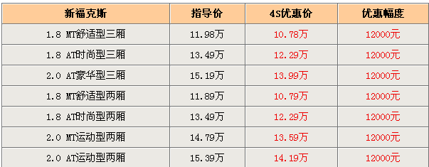 筆者日前走訪北京長安福特4S店時獲悉,目前新福克斯優惠又提升2000元,全系優惠1.2萬元,由于新嘉年華的上市,商家為了留出庫存故加大了新?怂沟淖尷