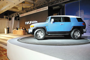 發(fā)布會上,豐田汽車中國本部長代代木昭展示了2006~2007年SUV車型在中國市場的飛速增長趨勢,表明豐田從去年開始已注視中國SUV市場,豐田今年投放三款重磅SUV車型:漢蘭達、蘭德酷路澤以及FJ酷路澤均選在年內上市發(fā)布價格,占領了國內市場的中、大型SUV市場一定份額。