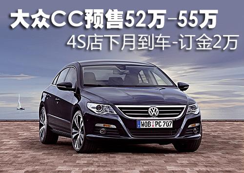 據4S店銷售人員介紹,目前大眾CC已經可以接受消費者預訂,訂金為2萬元。4月份4S店首批車型將到店,預計這款車的售價在52萬-55萬區間,但具體官方價格尚未公布。配置方面,這款車分為豪華版和頂級版,氙氣大燈、電動折疊加熱外后視鏡、定速巡航及電子駐車制動器等均是兩款車型的標準配置。但由于價位以及市場定位的不同,大眾CC轎跑頂級版配備了更加高級的無鑰匙啟動及鎖定系統好和30GB內置硬盤及觸摸屏語音控制。