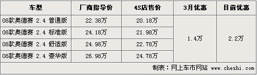據(jù)北京地區(qū)廣州本田4S點銷售人員表示,目前銷售的08款奧德賽降幅又出現(xiàn)了新的優(yōu)惠幅度。3月份左右,奧德賽全系優(yōu)惠到了1.4萬元,而目前增加到了2.2萬元,直接增加8000元,最低價格僅售20.18萬元。現(xiàn)在購車除了可以得到現(xiàn)金優(yōu)惠外,還可以得到商家贈送的原廠汽車裝飾。在現(xiàn)售的四款奧德賽車型中,普通版座椅為絨布材質,其他三款均為真皮材質,現(xiàn)車多以黑色和銀色為主。