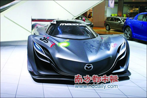 ●馬自達(dá)Furai概念車:這款車搭載一臺(tái)中置的馬自達(dá)三轉(zhuǎn)子20B引擎,由于使用E100乙醇燃料,其功率達(dá)到450馬力。Furai在原有賽車規(guī)格車身不變的情況下可以達(dá)到原來下壓力的80%.Furai利用獨(dú)特的吸氣模式將空氣導(dǎo)入進(jìn)氣口,從而大大提高氣流的利用率。