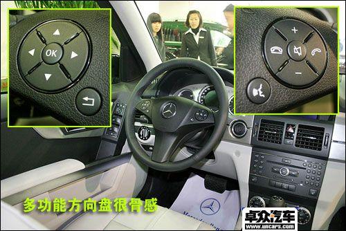 我們這次拍攝到的GLK350是GLK系列中的頂級車款,它配備有車載電話、液晶顯示屏、后排空調出風口、多功能方向盤、全景天窗、電動座椅調節、頭枕高度電動調節,并且帶有記憶模式等等舒適性配置,同時8安全氣囊、ESP的配備又為GLK上了一把安全鎖。