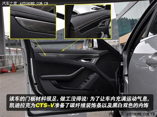 再看看特點,除了內飾透出的動感元素外,材料的選用在CTS-V上也十分講究!這里我只說一點,就是內飾細節中很多都采用了類似翻毛的皮革。如在方向盤握把上;變速器擋桿兒上以及座椅與身體貼合的部位均使用了這種面料,通過靜態與駕駛的體驗,翻毛皮不只表現出極好的手感,在摩擦力與防滑作用上也特別到位,因此個人也是非常喜歡!