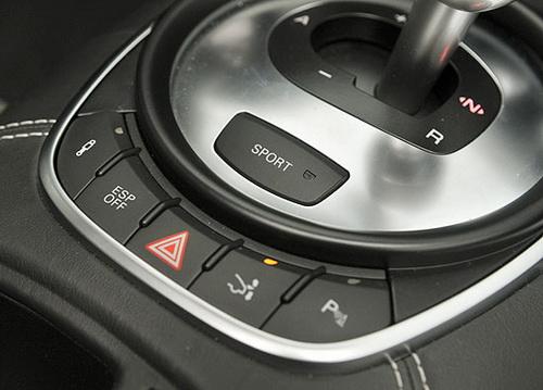 排檔座上有N空檔、R倒檔、A檔及“+”、“-”手排等檔位,啟動(dòng)發(fā)動(dòng)機(jī)后需踩踏剎車(chē),并向左撥動(dòng)排檔桿,此時(shí)儀表板DIS屏幕下方顯示“A”、變速箱進(jìn)入自動(dòng)模式;有別于一般自動(dòng)變速箱,A檔位下車(chē)輛不會(huì)自行向前滑動(dòng),駕駛?cè)孕璨忍び烷T(mén),扭力才會(huì)自輪胎宣泄而出。當(dāng)然喜好激烈駕馭的車(chē)主,也能將排檔桿前推,或是直接撥動(dòng)方向盤(pán)換檔撥片,此時(shí)R tronic變速箱則進(jìn)入手動(dòng)模式,駕駛可主動(dòng)進(jìn)行檔位選擇。