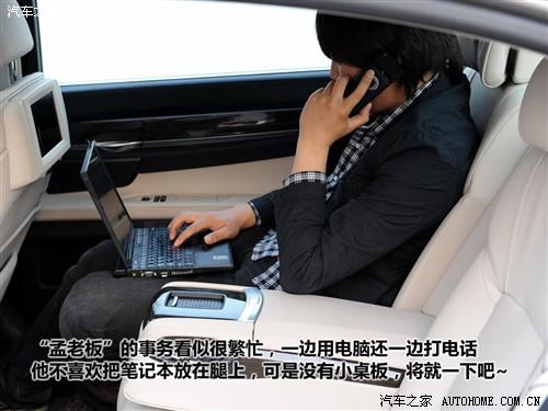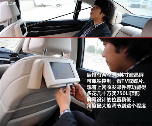小桌板的問題也是一樣,“孟老板”認為沒有小桌板不應該,他只能把筆記本電腦放在腿上,換作是我就寧可放在腿上,因為更靈活,小桌板往往不實用還占空間,而且車上用電腦畢竟是短時間的,時間長了別說腿受不了電池也經不住啊。740Li前排靠背頭枕下方在背面為后排乘客安裝了兩個液晶屏,能享受到看電視聽音樂這一類的服務,實際上可以有更強的功能,只不過要想上網收發郵件之類的就得多花幾十萬買750Li頂配車型。