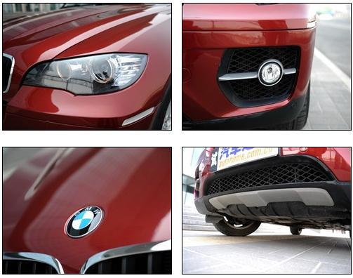 這方面的表現最明顯就是前臉,如果我們從正前方看的話,似乎X6的外觀和別的寶馬車型比起來并沒有太大特色,特別是和X5比較接近,只不過保險杠更大一些,大燈形狀更扁平一些。