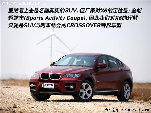 跨界的概念最早出現在尺寸比較小的車上,例如我們接觸較早的SX4和CROSS POLO,但誰也沒有規定只有小車才能跨界吧?現在跨界的概念已經延伸到了SUV和跑車領域,那么今天我們體驗的寶馬X6是怎么跨界的呢?廠家說它是一款全能轎跑車,或者說是一款具備越野功能的轎跑車,所以我們可以認為它是一款SUV和轎跑車跨界的車型。