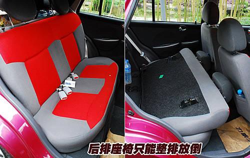 力帆320的后排座椅坐墊也比較短小,而且后排座椅放倒只可以整排放倒,不能4/6式分離。對于經常帶家人郊游外出的消費者來說,這樣的設計在某些時候會帶來一些不便。