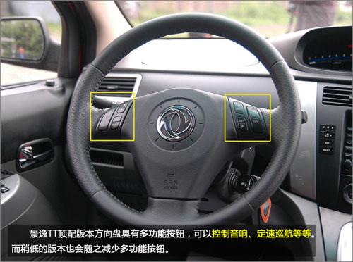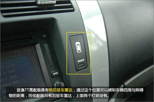 作為一款“高性?xún)r(jià)”比轎車(chē),景逸的配置看起來(lái)有些眼花繚亂,甚至出乎意料:四向可調(diào)節(jié)方向盤(pán)、左腳休息踏板、泊車(chē)輔助系統(tǒng)、倒車(chē)影像系統(tǒng)、可外接音源(AUX/USB/iPod等)、CD支持MP3/WMA、6喇叭環(huán)繞揚(yáng)聲器系統(tǒng)、自動(dòng)頭燈、空調(diào)后排出風(fēng)口等這一切都體現(xiàn)出景逸TT超高的性?xún)r(jià)比。