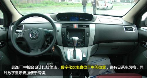 景逸TT的儀表盤(pán)位于中控的正中央,紅色的背光特別醒目,發(fā)動(dòng)機(jī)轉(zhuǎn)速、車(chē)輛時(shí)速、油料情況、音響、空調(diào)控制等信息都能得到充分的顯示。中控臺(tái)上采用人機(jī)工程學(xué)原理設(shè)計(jì)的各種按鍵,簡(jiǎn)單易用,處處體現(xiàn)了人性化關(guān)懷的設(shè)計(jì)元素。而且,“景逸TT”換擋桿也移至了中控臺(tái)上,不僅使用順手便利,更為駕駛員右側(cè)騰出了更大的活動(dòng)空間。