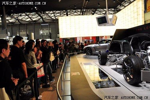 日產(chǎn)GT-R展車的旁邊停著一輛解剖的演示車,很多似懂非懂的觀眾都對著解剖車在給身邊的人認真地講解著。我身后的一位兄弟指著GT-R的發(fā)動機向他的女友說著:看,雙離合變速器!@#¥%……&* 我心想:朋友,雙離合變速器真的在后面!看來,高科技跑車除了跑得快,還有一個重要的作用——給人們提供聊天吹牛的素材。