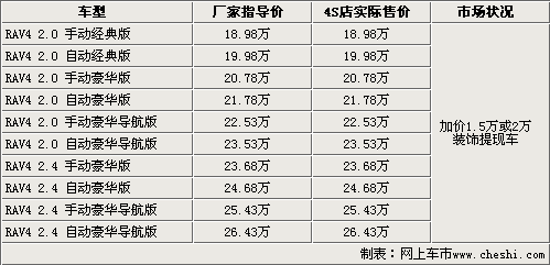 據一汽豐田4S店銷售人員介紹,由于RAV4是4月10日剛剛上市的全新車型,所以貨源比較緊張。消費者購車需要提前預定,訂車需要等待2個月的時間,也就是要到6月份才可以提到現車。當筆者表示想要盡快提到RAV4時,該銷售人員表示需要在原廠家指導價的基礎上加價1.5萬元或2萬元裝飾,可保證消費者在本月底提到現車。