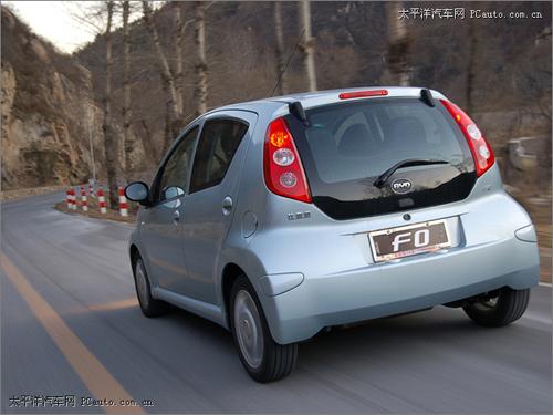 比亞迪F0整個車身設計相當動感,鈑金和漆面工藝也有很大提高。前臉造型采用了“笑臉”式的進氣格柵設計,同時與前保險杠黑色中網相互呼應。上下兩部分有很強的層次感,配合花生狀的前大燈,一時間時尚氣息成為比亞迪F0的明顯標志。