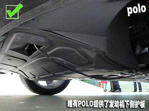 很顯然上海大眾為POLO提供了發動機下方的保護底板,無論這一層護板是否為金屬材質,在實際使用中它的確可以起到減小不平路面對發動機油底殼、變速器底殼損傷的作用。
