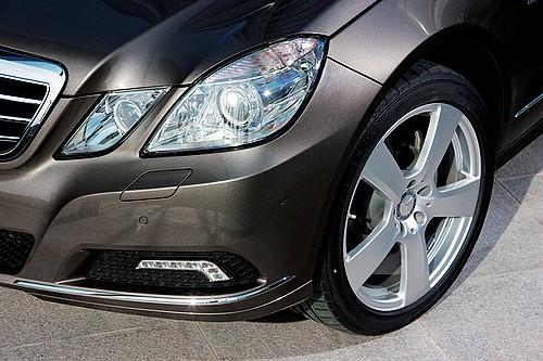 也許你已經(jīng)察覺到它的設(shè)計手法與C級車和GLK有著諸多相似之處,恭喜你答對了。今后一段時間內(nèi),奔馳的新車都將沿用這一設(shè)計思想。廠方還為E級車準(zhǔn)備了兩種前臉設(shè)計,可惜區(qū)別僅限于鍍鉻格柵的橫輻密度(有三輻條和四輻條兩款),類似C級時尚型的“大車標(biāo)式前臉”則被留給了剛剛發(fā)布的E-Coupe,即E級轎跑車。奔馳的官方說法是后者的運動氣質(zhì)與“大標(biāo)”更契合,可我從設(shè)計師口中套出的答案似乎更具說服力:奔馳的商標(biāo)是有固定尺寸的,而轎車版的格柵面積比轎跑車大一些,搭配起來會不太協(xié)調(diào)。