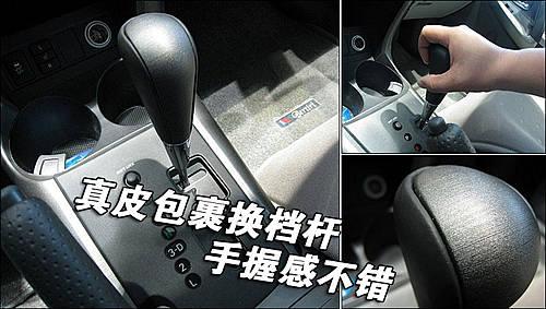 采用真皮包裹+拉絲面板設計的擋把不僅是提升了檔次,而且手握的感覺也很不錯,檔位也比較清晰。