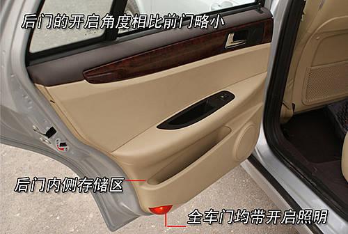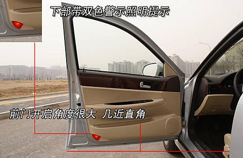 前排車門開啟角度均較大,方便了任何身材的駕乘者進入,并在四門內側下部均體貼的設計了開門提示燈,保證了開啟車門時對后方來車的提示及實用者的安全。