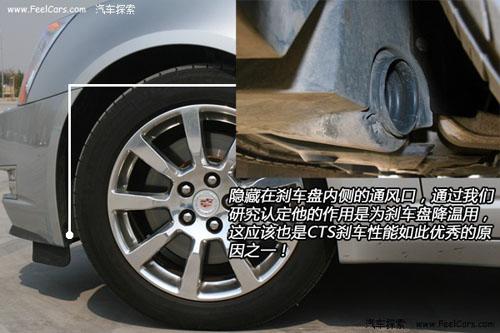 做完剎車測試,我們又對新CTS的輪胎,剎車盤片進行了仔細的觀察研究,發(fā)現(xiàn)在輪胎內(nèi)側(cè)隱藏了一個出風(fēng)口,正對著剎車盤。通過分析我們認定他的作用是對剎車盤降溫,這樣能夠讓剎車盤始終保持最佳狀態(tài)。看來新CTS能夠取得如此好的成績通用汽車在設(shè)計上確實下了一番苦心的。