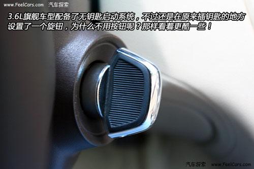 3.6L旗艦車型配備了無鑰匙啟動系統,不過還是在原來插鑰匙的地方設置了一個旋鈕,為什么不用按鈕呢?那樣看著會更酷一些!手剎采用了美式車型常用的“腳蹬手拉”式,踩下去為拉上手剎,拉動扳手為松開手剎。