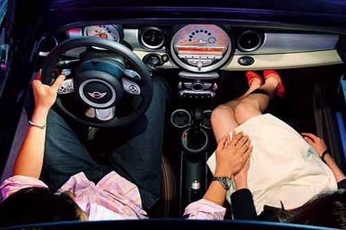 所以,這是輛有靈性的MINI,它會教你如何讓“潮女潮男” 們投懷送抱。復古的開關(guān)總會引得座客把玩,七彩魔幻的氛圍燈也會在恰當?shù)臅r候助燃激情。甚至寶馬式的方向盤換擋撥片此時也變得很有人情味兒,加減擋足可以用一只手來完成。那另一只呢?當然是和情人的左手緊扣在一起嘍!然而,想得到艷情的代價是你必須懂得什么叫MINI。如果你完全不能容忍硬邦邦的懸掛、轟隆隆的胎噪和發(fā)動機聲音,那你還是趁早買輛現(xiàn)代Coupe吧!