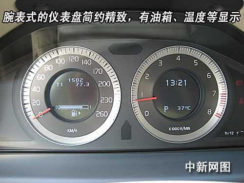 腕表式的儀表盤(pán)簡(jiǎn)約精致,沒(méi)有炫麗的燈光效果,看上去并不起眼。剩余油量和可行駛里程以數(shù)字方式顯示在車速表中央,當(dāng)前時(shí)間、外界氣溫及檔位顯示在轉(zhuǎn)速表中央。所有儀表信息都采用中文顯示。