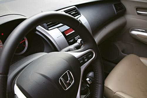 鋒范中控臺(tái)的樣式比較規(guī)整,各功能區(qū)域劃分明顯,一些常用的按鍵還被刻意放大,提升了實(shí)用性,但相比新飛度非對(duì)稱(chēng)布局的中控臺(tái)要顯得中庸了不少。另外,變速器面板的樣式有很明顯的上一代車(chē)型的影子,而藍(lán)牙系統(tǒng)的位置如同第七代雅閣一樣被安置在駕駛員側(cè)的A柱上。