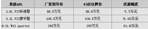 市場情況:起初高檔豪華車也是直接降價,之后又出現送購置稅的政策,甚至出現“買大車送小車”的舉動,讓人覺得豪華車市場利潤之大。而奧迪A8L近日的讓利政策也是贈送購置稅。但目前現車數量并不多,車型有限。