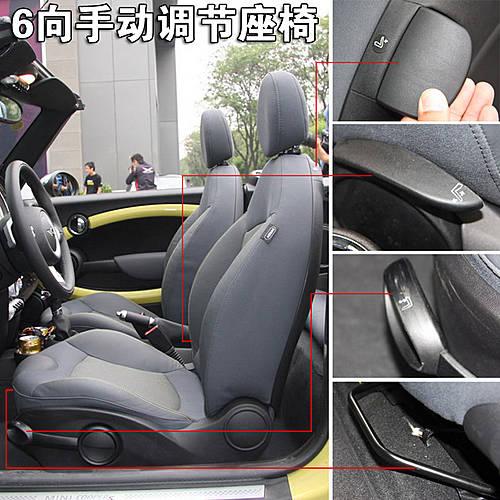 新一代Mini Cooper和Mini Cooper S敞篷版座椅根據車主的個性選擇,分為織物和真皮兩種材質。多達6向的手動調節方式,可以讓任何一個駕駛者輕松找到適合自己的坐姿。而扳動前排椅背上的扳手,可以放到和移動前排座椅,方便后排乘員進出。