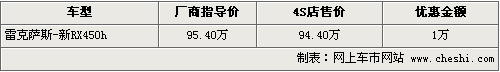 據(jù)雷克薩斯4S店銷售人員表示,剛剛上市的RX450h的貨源相對比較緊張,所以優(yōu)惠幅度也是最少的,只有1萬元。個別款色需要消費者提前預訂才行。