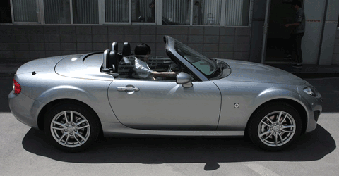 新一代車型并沒有延續使用上一代的那種織布頂棚,轉而使用了更實用的硬頂敞篷設計,精巧的頂棚只要12秒就能折起放進后備廂中,這個速度比許多軟頂敞篷車型還快。不過說實話,相比它合上蓋兒的樣子,敞開頂棚后的MX-5更迷人。