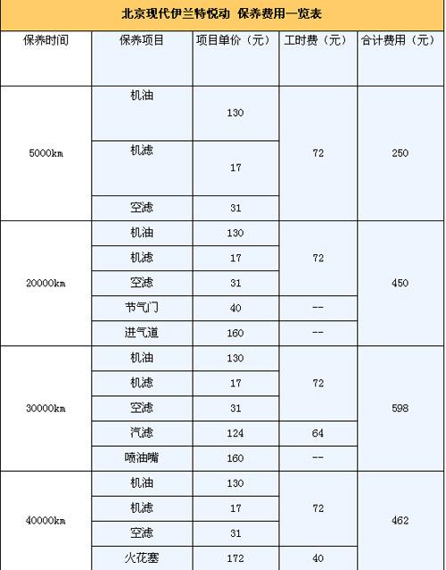 悅動的首保為5000km,以后每次的保養間隔為5000km。保修政策為2年/6萬公里保修(以先到為準)。第二次的10000km保養和首保內容相同。那么如果一年行駛2萬km,悅動一年要做四次保養。由下表可知其除了第一年,以后每年的保養費用1500元。