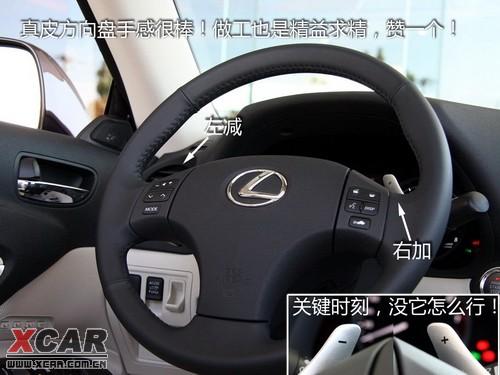 除了色調外,IS300C的內部設計與普通車型基本上一致,不過我倒是覺得儀表盤IS300C完全可以再炫一些,“風”要由內而外的“拉”。IS系列的方向盤手感很棒,真皮材質很細膩,粗細也非常趁手,普通車型都具備的換擋撥片當然也不會缺席。