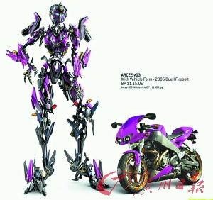 可以看到,在新增的這些角色里,量產(chǎn)車型依然是雪佛蘭的天下,尤其是正義的博派,新增車型都是雪佛蘭最新或即將上市的車型。還有三輛帥氣的摩托車,其中粉色、藍(lán)色的摩托車都是以女性角色出現(xiàn),藍(lán)色摩托車還是Ironhide(鐵皮)的女朋友,看來傻頭傻腦的鐵皮在談戀愛這個(gè)嚴(yán)肅問題上倒是一點(diǎn)兒都不傻,動作相當(dāng)快。