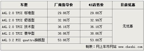 3.奧迪A4L全系現(xiàn)車(chē)少 預(yù)訂最短等一周時(shí)間