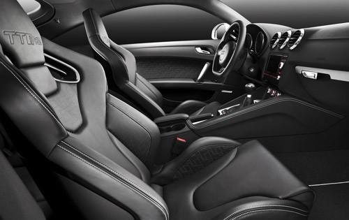 只是眼前的這輛TT要明顯比普通版的TT更加夸張,設計師在它的頭燈下部設計了兩個非常夸張的頭部進氣口并配備了18英寸的鑄鋁輪轂,更為夸張的排氣管以及全新設計的尾部擾流板,從而使它看起來更加的充滿了運動風味,形成了一個矛盾的混合體,不過最有氣勢的實際上還是它那夸張的尾部擾流板。在采用了鋁合金連桿和平坦的擾流板設計之后,它看起來就像是改裝廠里添加上的改裝配件,與整體流暢而動感的設計格格不入。雖然奧迪TT曾經因為高速穩定性差而發生多起車禍,不得不采用后擾流板設計,但如此牽強附會的造型可以說是這款RS整車設計上最大的敗筆。