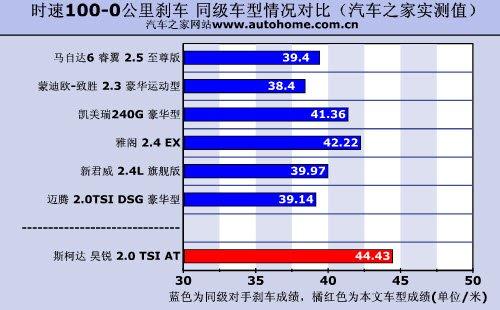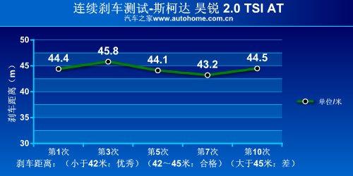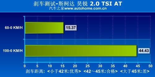 同樣在剎車測試時,205輪胎還是拖了后腿,抓地力實在有限。最終剎車的平均成績是44.4米,這已經是能接受的極限了。如果換上大一號的輪胎,剎車成績能提高到42米左右就比較理想了。