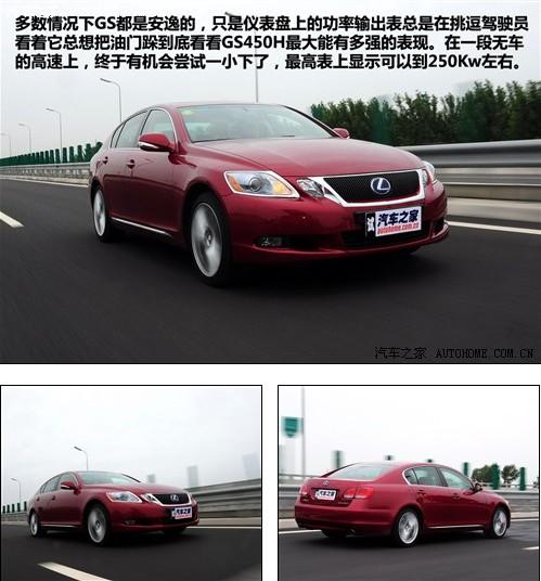 多數(shù)情況下GS450h都是安逸的,只是儀表盤上替代了發(fā)動機(jī)轉(zhuǎn)速表的功率輸出表總是在挑逗著駕駛員。看著它總有想把油門踩到底,看看這款車最大能輸出多大的功率。終于在沒什么車的一段高速公路上,我的這個心愿得到了滿足,一腳到底的油門,汽油發(fā)動機(jī)和電動機(jī)一起給后輪做工,我的身體被牢牢的貼在椅背上,功率表上的指針直到指向250Kw左右時才停住。在車速達(dá)到了200km/h時,在車內(nèi)可以明顯的感覺到發(fā)動機(jī)升到了最高檔位,功率也隨之降了下來,功率表的指針一下掉到了100Kw左右的位置。