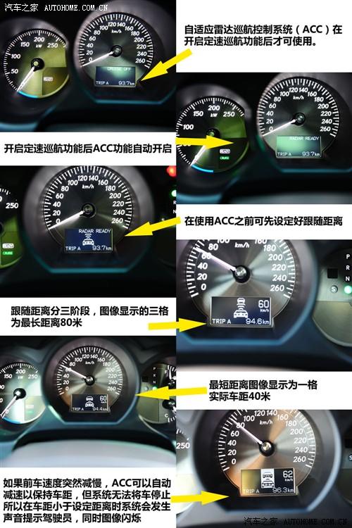 當(dāng)然,這個距離也可以在ACC開始工作以后再做調(diào)整,編輯在北京的北四環(huán)上試了試這個功能,只要該功能處于工作狀態(tài),車頭雷達(dá)是一支捕捉前方車輛并與其保持設(shè)定距離。如果前方車輛駛離原車道,雷達(dá)便會捕捉更靠前一輛車,并提速至定速巡航設(shè)定的最高速度以便盡快使車輛與前車保持設(shè)定距離。如果前車緩慢減速,系統(tǒng)會自動給車輛減速保持車距,但該系統(tǒng)是無法將車輛完全剎停的,當(dāng)雷達(dá)發(fā)現(xiàn)與前車距離小于設(shè)定距離,且自動減速的效果不好的時候便會發(fā)出警告音提示駕駛員采取措施,同時,中央顯示屏上的圖像開始閃爍。