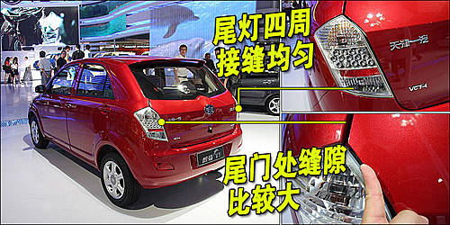 天津一汽威姿V1車尾部分設(shè)計與老款區(qū)別差別很大,與車頭相同的是,威姿V1的尾燈及后行李箱的接縫同樣十分均勻,整體做工做到了前后一致,但尾門處縫隙較大。