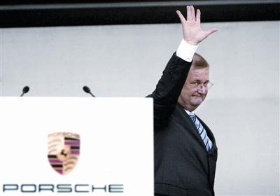 7月23日,在德國斯圖加特的保時捷汽車公司總部,魏德金發表告別演說后揮手離去。新華社/路透