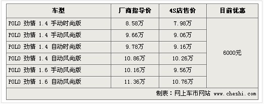 據4S店銷售人員介紹:目前POLO勁情系列優惠6000元,但車源比較緊張,所有車型需要預訂,預定時間在20天到一個半月不等。另外編輯從經銷商處得知,冰藍色車型訂車時間最短,而比較暢銷的紅色、銀色等需要等待較時間,如果急于購車,請安排好提車時間。