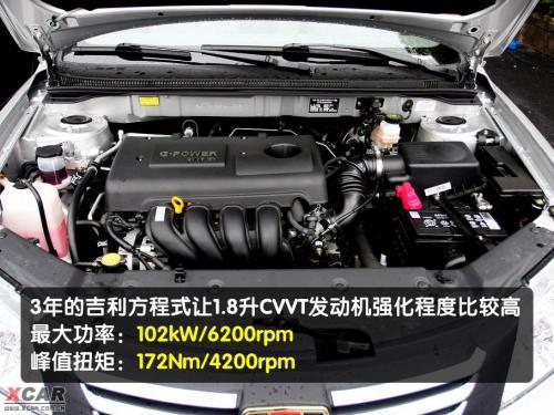 三年的吉利方程式讓1.8升CVVT發動機的強化程度比較高,平順的動力輸出和良好的過渡響應讓大多數人不用刻意熟悉就能很快上手。最大功率102千瓦,最大扭矩172牛米,1.8升自然進氣發動機做到這個水平已經算不錯了,看來這幾年吉利通過搞方程式賽車在發動機技術方面受益匪淺。