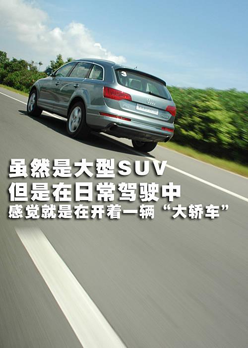 雖然新奧迪Q7 3.0TDI的整備質(zhì)量超過2噸,但是其動力性大大超出我的預料。只要你將轉(zhuǎn)速保持在2000轉(zhuǎn)以上,“推背”感就會十分強烈,加速迅猛。當轉(zhuǎn)速在3000轉(zhuǎn)左右時,發(fā)動機蓋傳出“咝咝”的放氣聲,提醒我增壓壓力達到了最大值,渦輪通過泄氣保護。