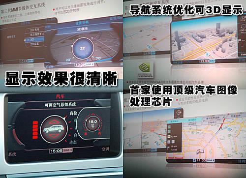 基于硬盤驅動的全新系統不僅信息處理速度更快,超大的硬盤空間更可存儲海量信息。第三代MMI多媒體交互系統提供分辨率為800×480像素的7英寸液晶顯示屏,在光線較暗的使用環境下仍能提供清晰的完美畫質。