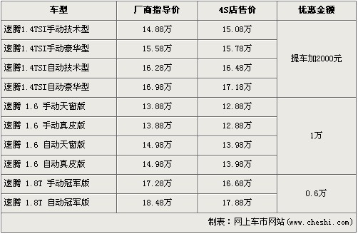 速騰全系最高優惠1萬元 1.4TSI加價提車