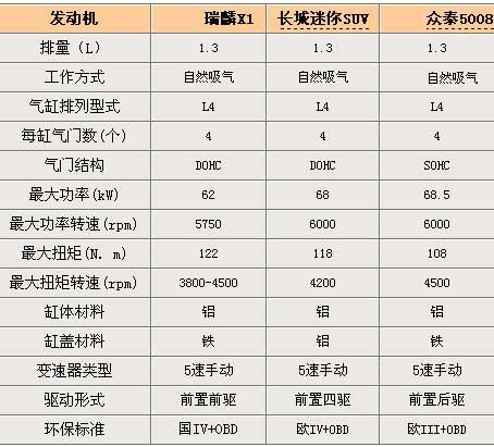 安全配置方面:在三車的半數(shù)或大部分車型上,都配備有ABS+EBD,雙安全氣囊之在瑞麟X1和長城迷你上找到,眾泰5008全系沒有這個被動安全配置。很顯然,瑞麟X1發(fā)揮了后來車型的優(yōu)勢,中高配車型竟然還有前排側(cè)氣囊,以及和長城迷你SUV一樣的安全帶未系提醒。另外X1還引入了倒車雷達,這是其他兩車所沒有的。