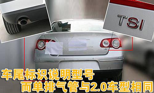 車尾“TSI”的標識表明了邁騰1.4TSI的車型身份,由于邁騰是“B”級車,所以尾部并沒有出現速騰1.4TSI尾部“1.4”的數字標識。此外,其車尾左下方的排氣管并沒有采用邁騰1.8TSI的雙排氣管設計,而是采用與邁騰2.0車型相同的單排氣管設計。