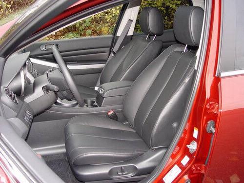 正如前述所提及的那樣,CX-7的內(nèi)飾有了很大提升,采用了新的儀表板和座椅材質(zhì),扶手上的護(hù)墊更軟,儀表采用黑色或金屬質(zhì)感裝飾,新的方向盤增加了包括藍(lán)牙電話在內(nèi)的控制鍵,儀表板旁邊中控臺頂部的3.5英寸信息顯示屏是標(biāo)配,可以顯示暖風(fēng)和收音機(jī)信息。同時(shí)駕駛員座椅配備了新的三點(diǎn)記憶功能,前排乘客座椅增加了傾角電動可調(diào)功能。