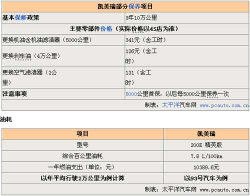 在保養(yǎng)方面,廣汽豐田為凱美瑞提供了3年或10萬公里的整車質保,在同級車型中相當出眾。凱美瑞擁有2.0升和2.4升兩種排量車型,我們從廣汽豐田4S店了解到,凱美瑞擁有的這兩款車型保養(yǎng)費用幾乎是一致的,只是在個別零部件上有微小的差異。